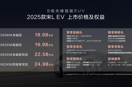 增配不加價(jià)!2025款宋L EV 18.98萬(wàn)元起