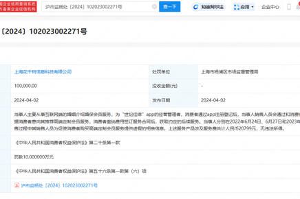 世紀(jì)佳緣再因虛假相親信息被罰10萬 此前已被罰60萬