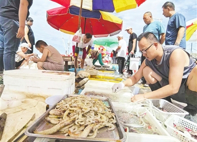 記者在即墨區(qū)鰲山衛(wèi)街道七溝二村漁碼頭看到,市民和游客將漁碼頭擠得水泄不通,一艘艘漁船靠岸后,鮮活的梭子蟹、蝦虎、青蝦、帶魚(yú)、舌頭魚(yú)等海鮮被市民和游客一搶而空。串聯(lián)鄉(xiāng)村振興與文旅融合 第39屆中國(guó)·大澤山葡萄節(jié)開(kāi)幕