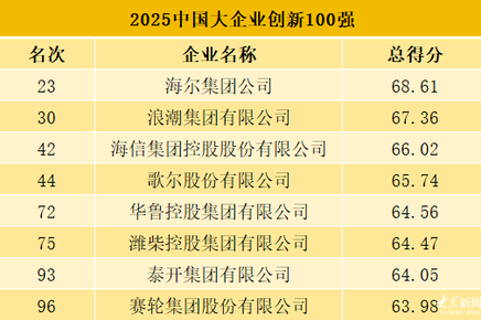 2025中國大企業(yè)創(chuàng)新100強(qiáng)發(fā)布 山東8家入選